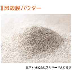 上述したように、卵殻膜は強固なメッシュ構造でヒトではほとんど消化吸収できないため、卵殻膜を食べても体内に取り込むことはできませんでした。しかし、最近では、卵殻膜の加水分解技術や粉砕技術の開発が進み、パウダー化にも成功しています。これによって、卵殻膜の生理作用に関する実験が可能になったり、食用としての活用の道が開けたりしました。