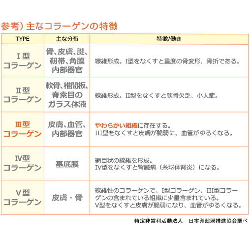 人の体内には約20種類以上のコラーゲンがあり、それぞれ分布する箇所や機能が異なります。その中でも、皮膚や骨に多く含まれるⅠ型コラーゲンやⅢ型コラーゲンは美しい肌を創るために必要不可欠なものと言えます。